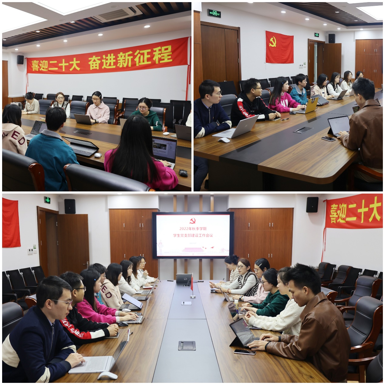 于瀛老师首先传达了校党委书记焦扬同志在学校“学习传达党的二十大精神大会”上的讲话内容,就接下来基层党支部如何围绕二十大精神,开展系列党建,提出两点要求:一是聚焦原文学。支部书记要带领学生党员一起深入学习二十大报告原文,用好学校党委党校下发的各类学习资料,学深悟透、融会贯通。二是深入思考学。用好校内专家讲座、校内博讲团等丰富的理论宣讲资源,带领同学们深入领会党的二十大报告中的新思想。党的二十大报告把“实施科教兴国战略,强化现代化建设人才支撑”作为一个独立专题,强调了教育、科技和人才三位一体,要让支部党员不断提升思想站位,自觉肩负起新时代高校学子的使命担当。