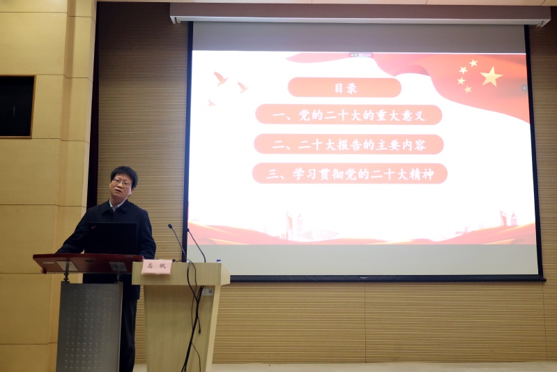 高帆教授紧紧围绕“党的二十大的重大意义”“二十大报告的主要内容”“学习贯彻党的二十大精神”等三部分内容对党的二十大报告进行系统宣讲和深入阐释。高帆教授在报告中强调:党的二十大具有历史意义、时代意义、实践意义和世界意义等四个重大意义,要深刻理解党的二十大精神的重大意义,最重要的是要牢牢把握“关键时刻”的内涵。关于二十大报告的内容,高帆教授从唯物史观、中国式现代化以及生产力与生产关系等三个角度,系统梳理了二十大报告的逻辑框架和核心要义。高帆教授认为,二十大报告新变革、新境界、新任务、新举措以及新工程(党的建设)是其基本逻辑。对于师生如何学习二十大精神,高帆教授强调要牢牢把握“九个深刻领会”,始终坚持“五个必由之路”,更加紧密地团结在以习近平同志为核心的党中央周围,高举中国特色社会主义伟大旗帜,全面贯彻习近平新时代中国特色社会主义思想,为全面建设社会主义现代化国家、全面推进中华民族伟大复兴而团结奋斗!