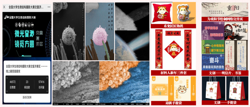 以美育人,激发多元发展。支部用艺术赓续红色基因,召开科技之美主题组织生活,对话上海科技馆,引导青年探索科研之美。基于红色寻访,形成明信片、书签、手提袋3款文创,萌趣色彩结合红色元素。支部用文创宣扬专业价值,设计匠匠虎年对联、迎新手提袋、抱枕3个套装,加强专业价值认同;牵头联动上交、同济三大高校开展“全国微结构摄影交复济大赛”,获57000余次访问量,用艺术特长助力专业宣传。