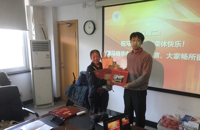 3月22日上午,材料化学教工党支部联合材料化学教研室,在邯郸校区先进材料楼为上月刚退休的马晓华教授举行欢送会。系党委书记于瀛出席会议,代表系党政班子对马老师20多年来为我系教学和科研所做的贡献表示感谢,并向她颁发荣休纪念牌。