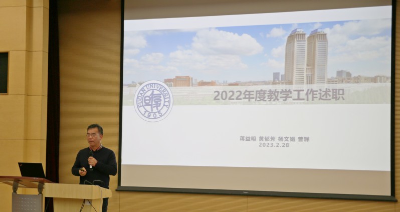随后,系党政领导班子成员结合分管工作进行述职述廉和年度工作总结。系教学副主任蒋益明结合教学管理、本研招生等重点工作详细介绍了本年度教学工作安排;系科研副主任梅永丰从科研平台、地方研究院等方面对推进科研合作交流作了介绍;系行政副主任倪峰作2022年度财务工作报告并对系内管理服务成效作了总结。
