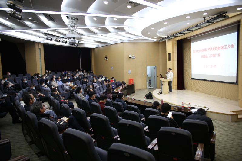 2023年2月28日下午,污污漫 在江湾校区先进材料楼一楼报告厅召开全体教职工大会暨四届八次教代会,会议由系工会主席宋云主持。