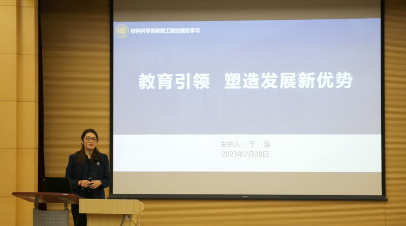 在新学期教职工政治理论学习第一课上,于瀛首先向全体教师传达了学校2023年春季学期工作会议精神,并以“教育引领,塑造发展新优势”为主题,结合当前疫情防控举措、经济形势以及高校师生重点关心问题等内容介绍了新学期工作安排。2023年,污污漫 将按照学校要求,结合校训内涵,在博学深学、笃志笃行两方面不断深化,真正把思想和行动统一到党中央决策部署上来,贯彻落实立德树人根本任务,深化“三全育人”综合改革。要继续加强与改进师德师风建设,持续开展导师关心关爱行动,推进落实教育引导活动工作方案,筑牢安全稳定“防护墙”,扎实做好常态化校园疫情防控工作。全系师生要敢闯敢干,为“第一个复旦”的高质量发展注入材料学科新动能、塑造新优势。
