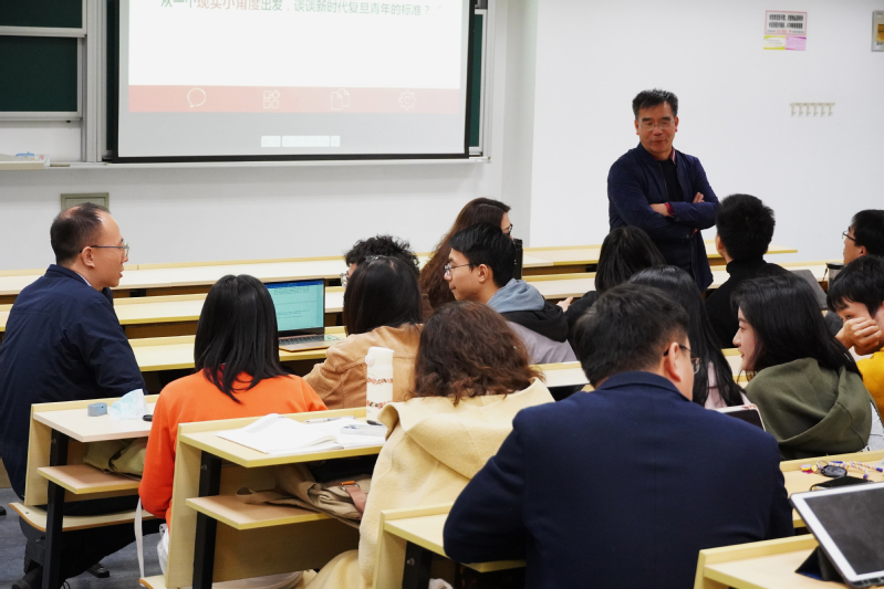 分享环节结束后,师生们按前后位置分组,以“一个现实小角度出发,谈谈新时代复旦青年的标准”为话题展开,进行了自由讨论和交流,氛围活泼热烈。