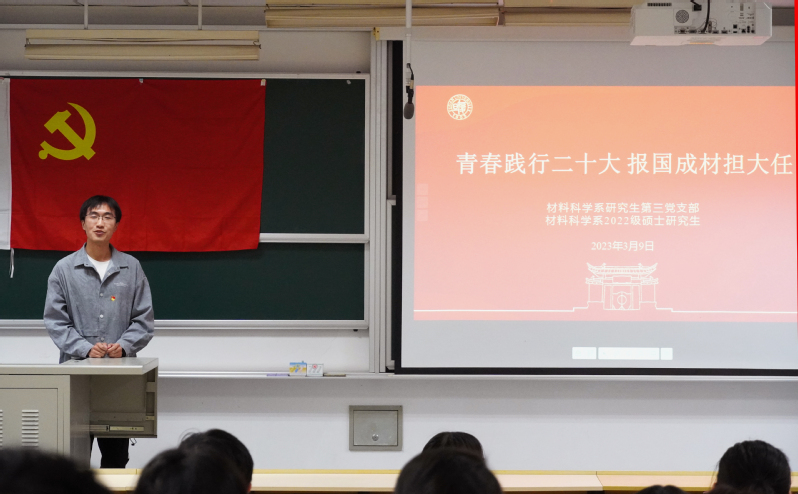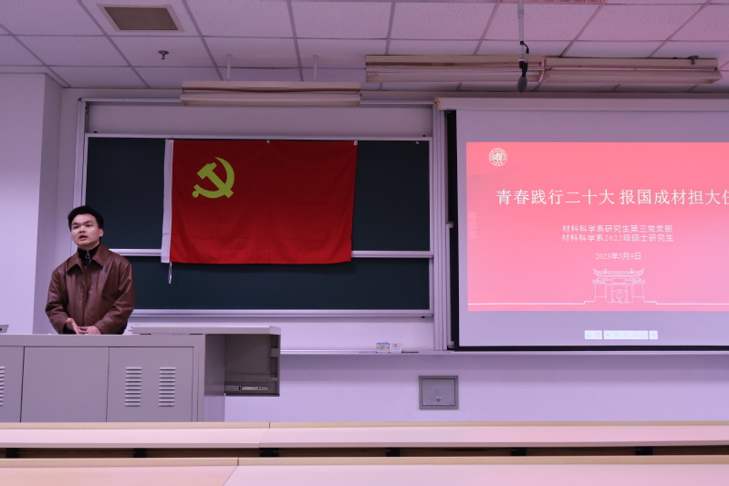 习近平总书记在党的二十大报告中指出:“当代中国青年生逢其时,施展才干的舞台无比广阔,实现梦想的前景无比光明”。材料学子应始终铭记科研报国的使命,能吃苦、肯奋斗,经住锻炼,甘坐冷板凳,在科研学习中日积月累地增长本领才干,用实际行动彰显复旦人勇挑重任和走在时代前列的精神风采。