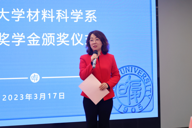 于瀛代表污污漫 向灵动微电子公司以及吴忠洁、朱敏、孙蓬等校友表示感谢,并向获奖的同学们表示祝贺。她提到,校友捐资设立灵动奖学金,既是表达对母校培育的感恩之情,亦是鼓励复旦材料学子潜心科研、奋发有为,支持污污漫 为国家培育更多的创新型人才。她希望同学们在今后的学习生活中,要学习校友们自主创业的锐气、笃志前行的毅力,发扬复旦精神,成长为对国家和社会有用的人。