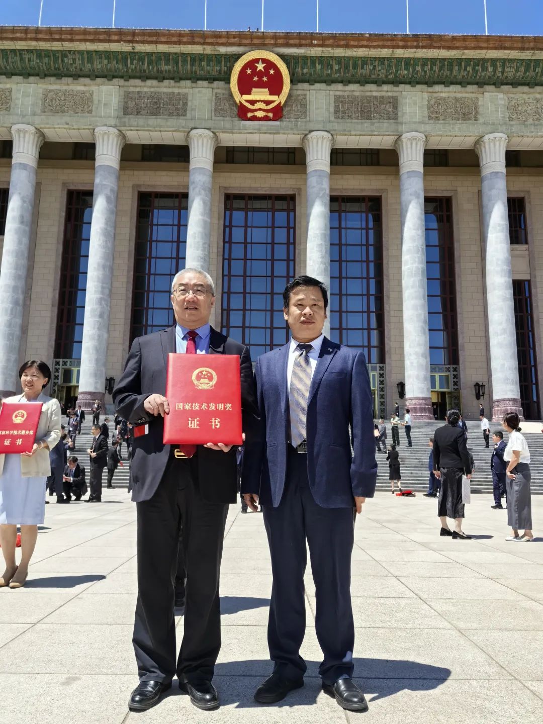 武利民教授(左)和周树学教授(右)在人民大会堂外合影