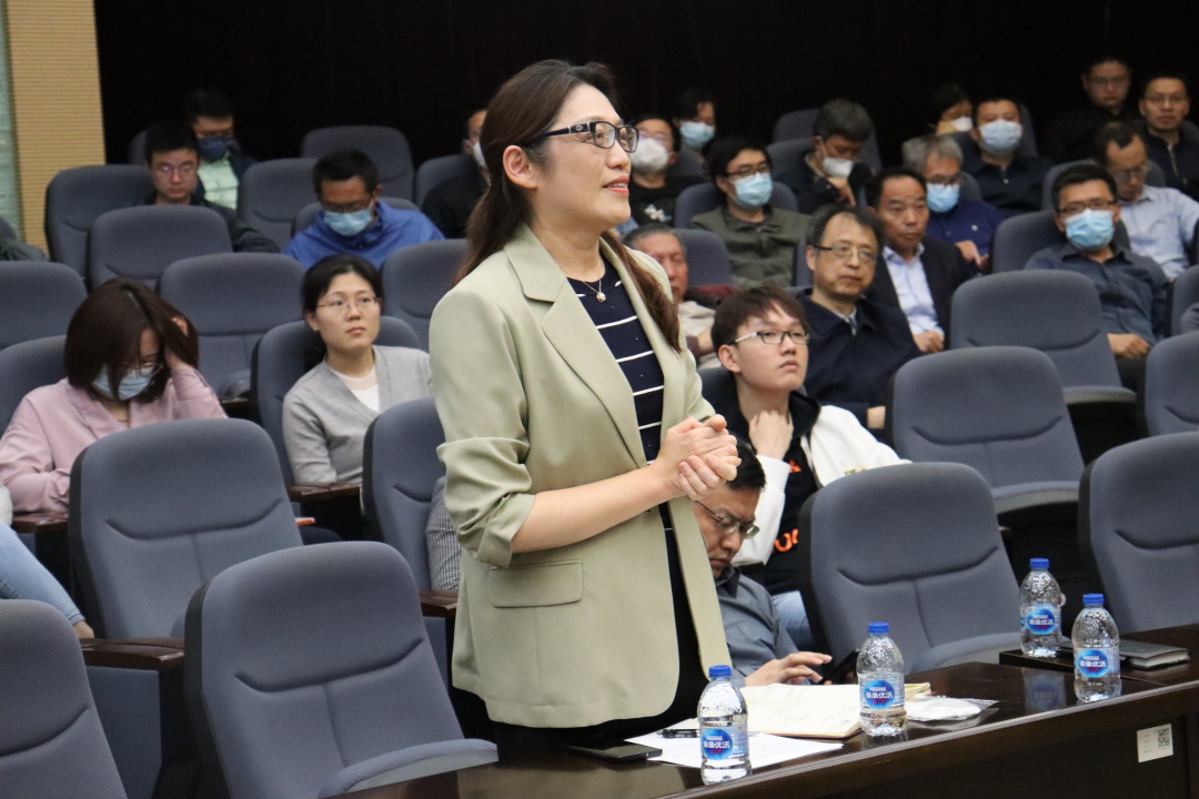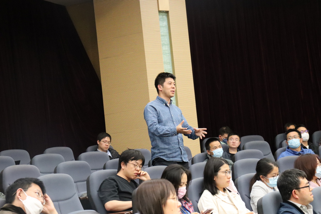 在报告会互动环节,于瀛书记就任课教师如何平衡课程教学难度和学生选课兴趣之间的关系与孙兴文教授展开交流,孙兴文教授建议结合不同课程的特点和学生的实际情况,灵活安排教学活动。青年研究员王飞就跨学科学程问题向孙兴文教授请教,孙兴文教授建议任课教师组团共建跨学科学程。