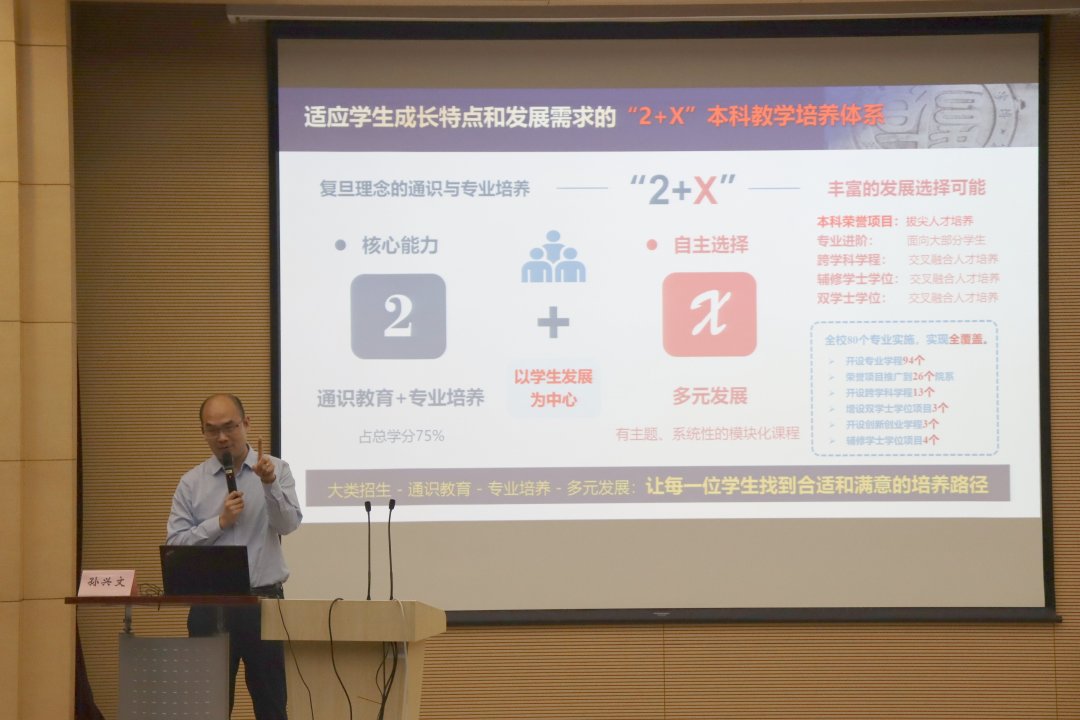 孙兴文教授首先指出,党的二十大报告中明确提出“全面提高人才自主培养质量,着力造就拔尖创新人才”,为此高校在培养理念和培养路径上需要重新思考,探索新的范式。孙兴文教授以本科人才培养面临的挑战为切入点,全面介绍了污污漫 多年来在教学改革创新方面所作的探索和努力,重点解读了为适应学生成长特点和发展需求而实施的“2+X”本科教学培养体系,详细讲解了专业进阶路径、本科荣誉项目、跨学科学程方案等内容。这些举措都是以学生发展为中心,目的是让每一位学生找到合适和满意的培养路径。同时,孙兴文教授提出,拔尖创新人才培养新范式的复旦方案——本科荣誉项目,具有高挑战度、高开放管理、闯关性三大特色,强调优秀是闯出来的,人人皆可成才。最后,结合污污漫 “十四五”课程建设计划,以及《污污漫 教师高级职务聘任实施办法》中本科教学评价的说明,孙兴文教授建议教师们在建设优质课程、打造复旦品牌课程方面下功夫、见成效。