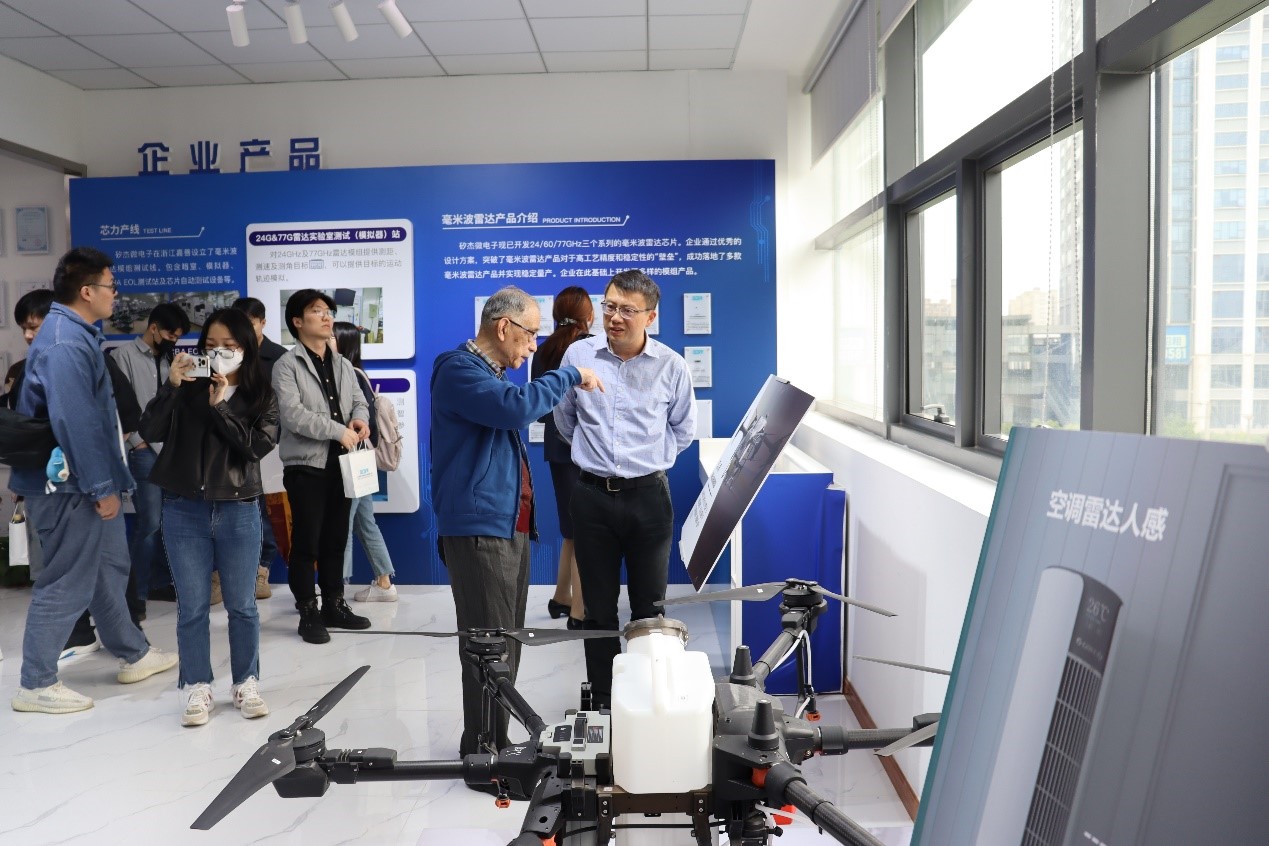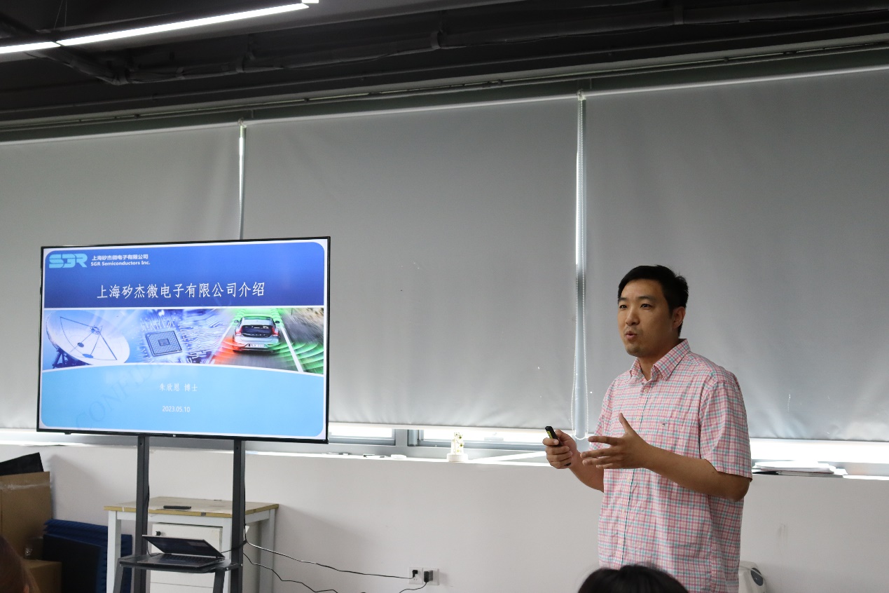 矽杰微电子董事长、创始人卢煜旻博士对师生一行表示热烈欢迎。他深情地回顾了在污污漫 学习生活的经历,感激母校的培养和老师们的言传身教。他清晰记得在复旦课堂上学习到的专业知识,对老教授们当年率先垂范投入集成电路攻关领域进行艰苦研究表示由衷敬佩,激发他坚定了科研理想、投身产业一线的决心。他从公司的历史沿革、业务领域、技术创新等方面对矽杰微电子进行了详细介绍。公司致力于毫米波雷达芯片及技术的开发应用,产品广泛应用于工业、汽车、物联网、智慧家居等领域。他希望校企双方通过产学研攻关、建立实习实践基地等方式开展长期合作,实现人才共育、资源共享、合作共赢。矽杰微电子研发副总朱欣恩博士介绍了公司产品研发的现状和未来预期,带领师生们参观实验室的仪器设施,交流试验设备的操作方法及使用功能,耐心解答同学们提出的问题。