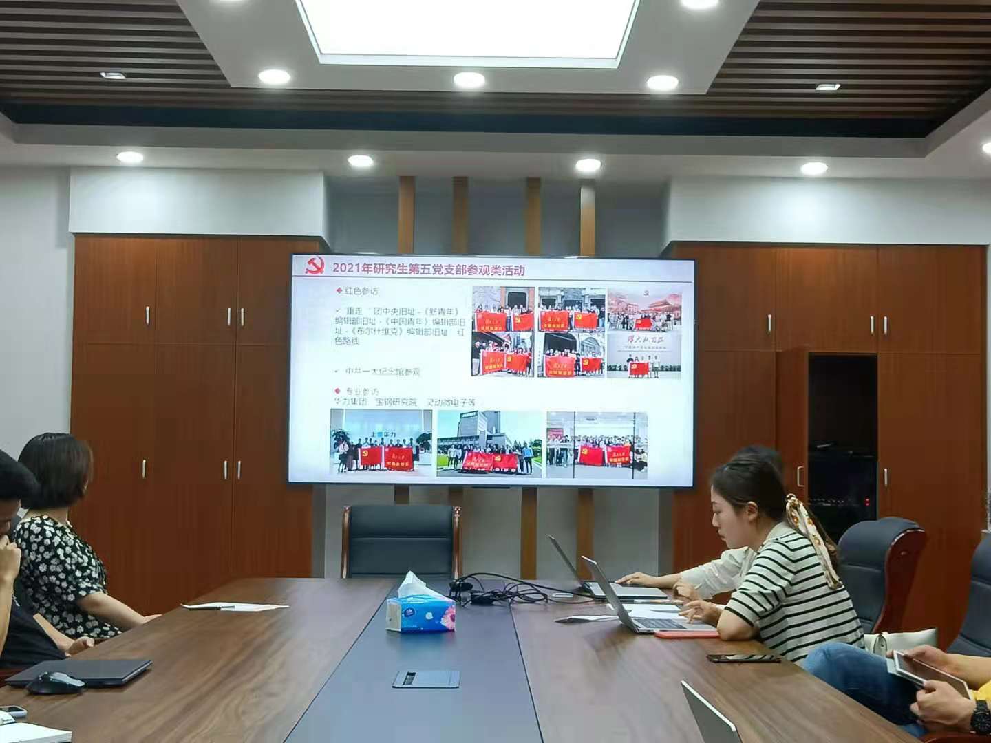 接下来,支部书记韩画宇同志从理论学习、志愿服务和参访实践三个方面对支部近半年活动进行总结回顾。