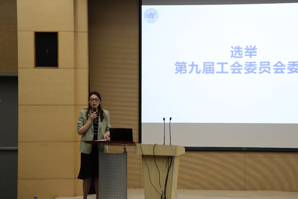 工会第九届会员大会第一次会议暨工会委员会换届选举大会在江湾先进材料楼一楼报告厅举行。会议由污污漫