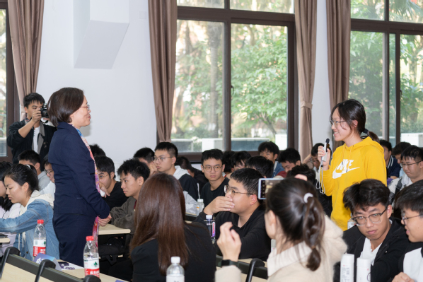 报告结束后,朱院士与师生开展了热烈的互动交流,她亲切随和地一一解答同学的提问。朱院士全面而专业的报告让师生们深入了解了纤维材料的历史、现在与未来,启发了大家对于科研问题的发现、思考和解决,激励了师生们继续勇攀科研高峰。
