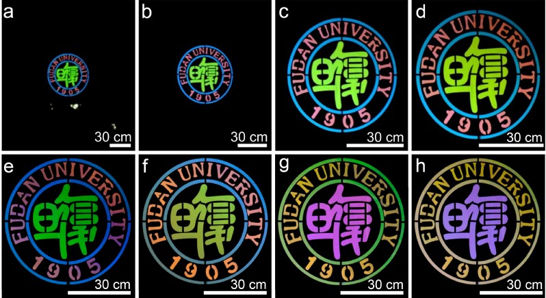 该逆反射结构色薄膜在智能显示、交通安全反光设施、防伪标签、结构色涂层和装饰等领域具有重要应用价值。如,薄膜应用于夜间交通反光标牌或广告牌时,由于车灯照明的方向和司机的视角处于同轴,司机从远到近可观察到均一、鲜艳的反光颜色;而路边的行人由于视角和车灯照明方向处于不同轴,随着车辆由远及近可观察到不断变化的反光颜色,从而可有效提醒行人(特别是佩戴耳机或听力受损者)主动避让后方的车辆,避免交通事故的发生。通过一定的照明和观察方式,该薄膜或涂层还可实现其他的智能交通显示功能,如具有交互式变色和闪烁功能的交通信号标牌等。