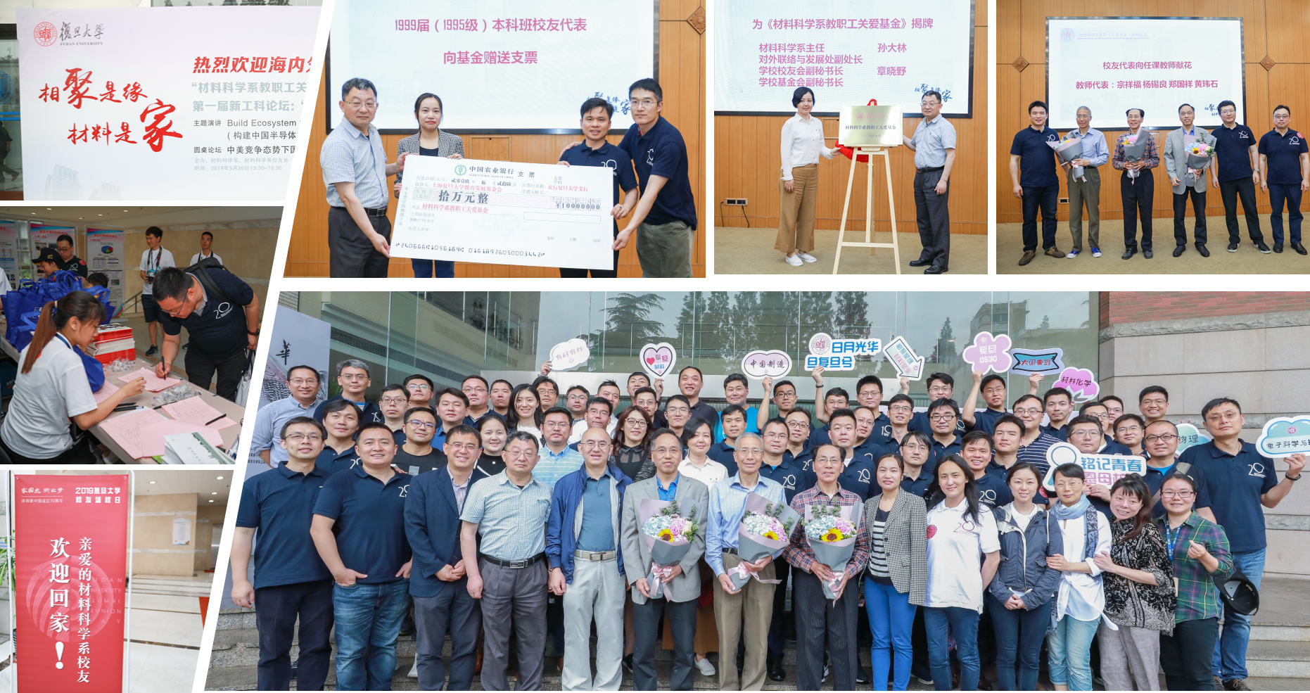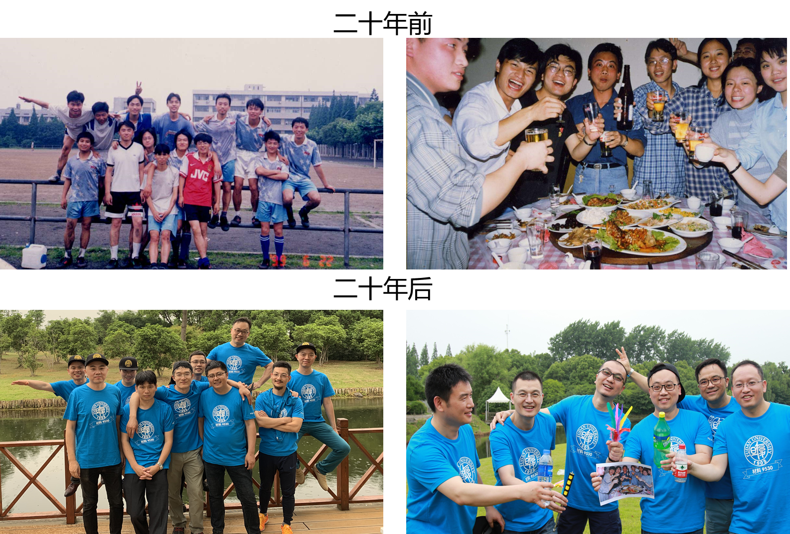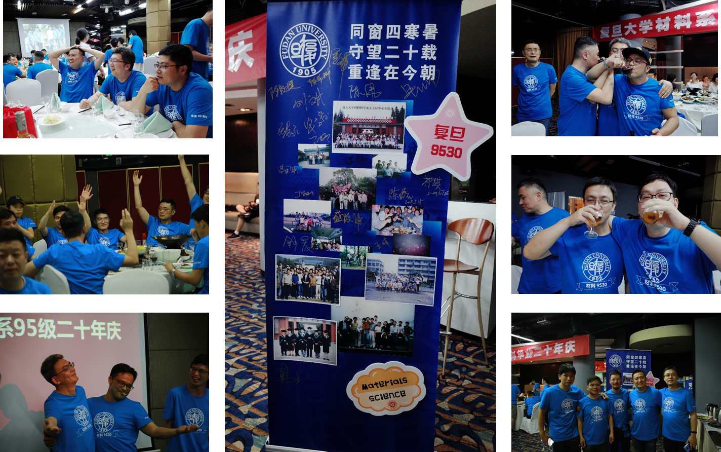 晚餐时分,大家彼此分享着这些年的人生际遇,有慷慨也有唏嘘,同时为感谢筹备组的精心安排,唯有杯酒相宽礼数丰。酒酣处畅怀相对,在一幕幕老照片的回放中,笑谈人生若只如初见,复旦材料四年的相知相持,原来就是最美好的年华。即使人到中年,只要那些年的回忆在,青春就还在。