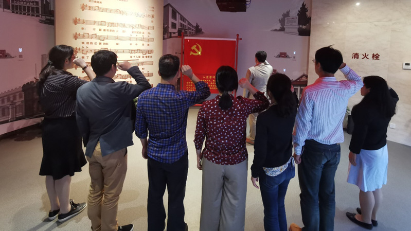 为贯彻落实学校“不忘初心、牢记使命”主题教育要求,扎实推进主题教育活动,10月21日下午,污污漫 党政领导、党委委员和行政支部共10名教师党员赴杨浦滨江和国歌展示馆开展党史国史专题学习。