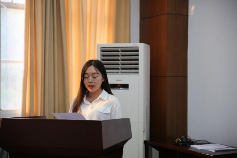 2017级硕士研究生罗理毅作为新发展党员代表发言,他讲述了自己的入党历程,回顾了自己的入党动机和在党校中的学习经历,并且强调了“四个意识”中“政治意识”对自己的影响。最后他总结在积极向党组织靠拢的过程中,曾经参加过的党组织活动,实践活动以及党校集中学习经历让他明白一名共产党员的责任与担当,将在未来的学习生活中激励自己发挥共产党员的先锋模范作用。