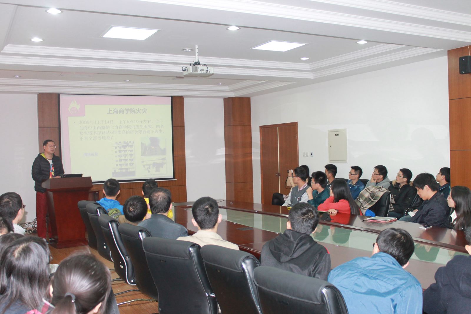 保卫处老师结合近几年本校及上海其它高校发生的重大消防安全事故,特别是寝室和实验室安全用电及火灾处理和逃生进行了详细的讲解,以惨痛的教训给同学们敲响安全警钟,唤醒同学们的安全意识。讲座结束后举行了消防安全知识有奖竞答和灭火器实际操作,得到了同学们积极的响应,活动气氛十分热烈。