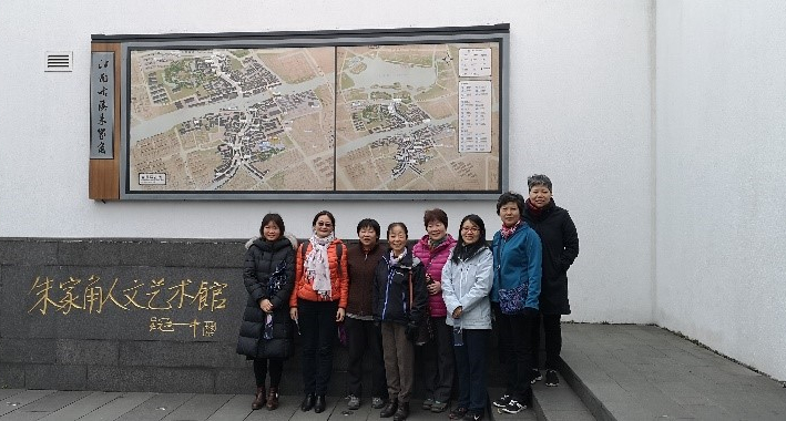 大家首先参观了朱家角人文艺术馆,艺术馆采用油画、雕塑等艺术表现形式,集中展现了朱家角当地的历史人文、古韵风貌和民俗风情。