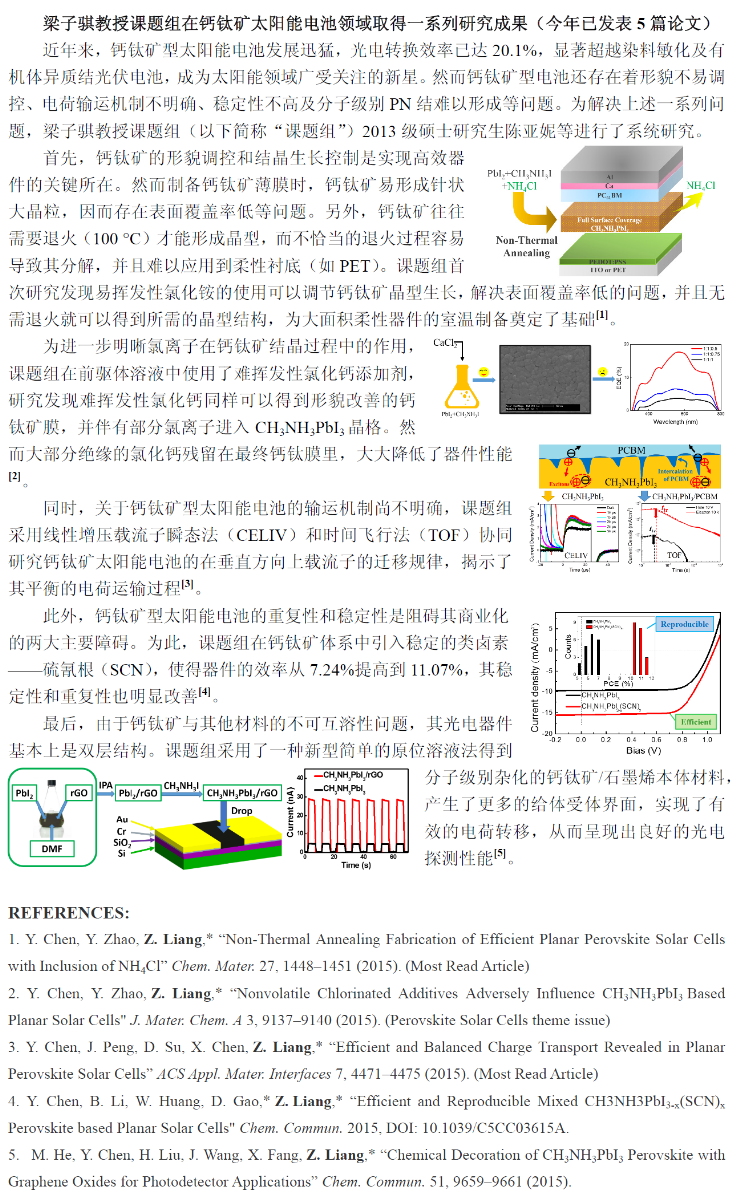 梁子骐教授课题组在钙钛矿太阳能电池领域取得一系列研究成果