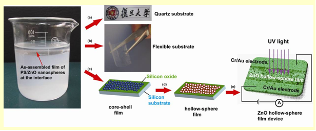 武利民教授、陈敏副教授等在前期合成无机空心微球的基础上,与方晓生教授、胡林峰博士合作,进一步利用油水界面自组装的方法,制备空心纳米氧化锌单层膜,并首次构筑了基于空心纳米氧化锌单层膜的纳米光探测器。相关工作发表在国际微纳材料领域权威期刊Small (IF7.333)。Chen M, Hu LF, Xu JX, Wu LM*, Fang XS*, “ZnO Hollow-Sphere Nanofilm Based High-Performance and Low-Cost Photodetector”, Small, 17, 2449-2453 (2011)