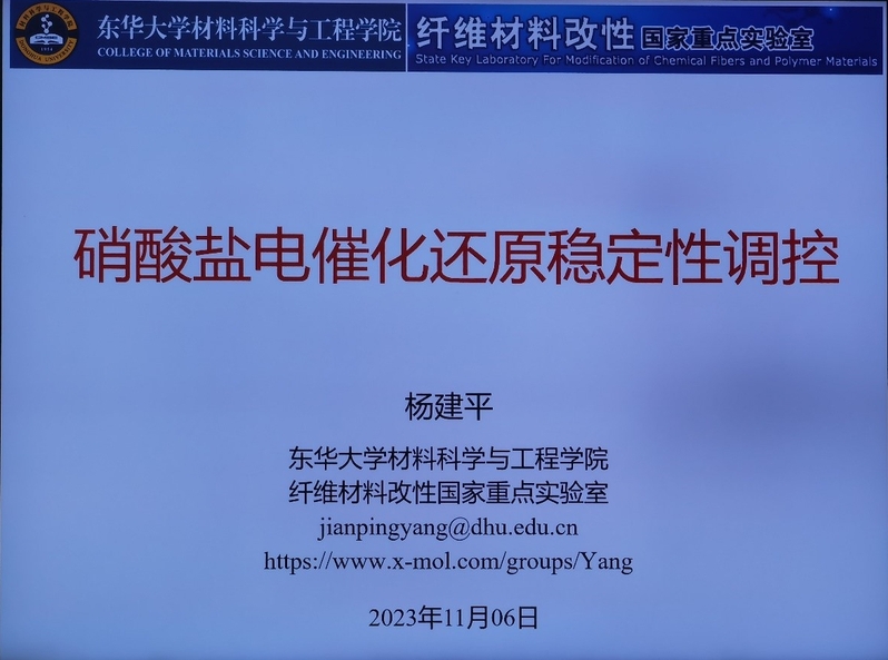 积极筹划“青年学术沙龙”系列活动,旨在拓展科研人的学术视野,碰撞出新的思维火花,营造积极向上的学术氛围。11月6日中午,本学年第三期沙龙在江湾校区先进材料楼221会议室举办。活动邀请了东华大学材料科学与工程学院副院长杨建平研究员就“硝酸盐电催化还原稳定性调控”作主题分享。报告会由系副主任梅永丰教授主持,多名青年教师参加。