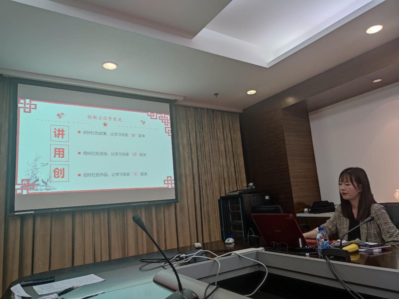 随后,博讲团党史宣讲团讲师代宁馨阐述党史学习教育的重要性和必要性,通过准确把握党史学习教育关于党的理论创新发展历史、践行党的初心使命的历史、党的历史发展经验规律、中国共产党的伟大精神等重点内容,创新党史学习教育的方法,如讲好红色故事、用好红色资源、创好红色作品等,努力把党的历史学习好、总结好,把党的成功经验传承好、发扬好,对党史学习教育进行全面动员,以优异成绩迎接建党百年。