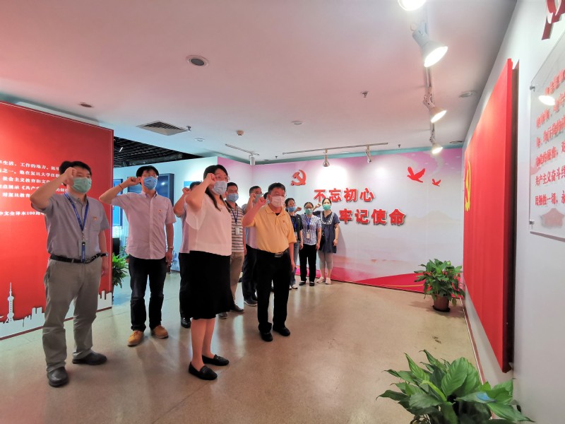 参观结束后,党委主持工作副书记于瀛带领中心组成员和支部党员面向党旗,举起右手,重温入党誓词,庄严宣誓,再次接受精神洗礼,表达传承宣言精神、为共产主义奋斗终身的决心。