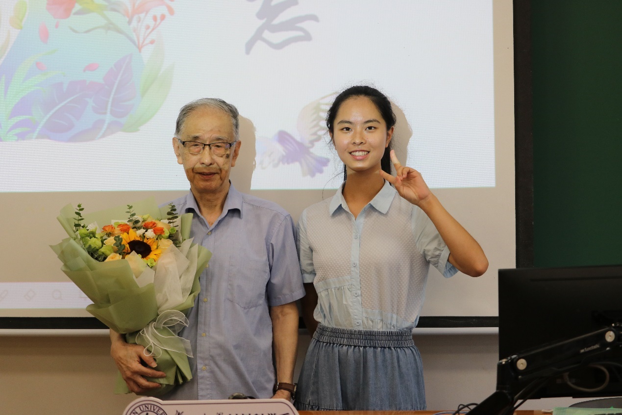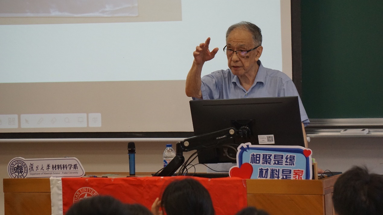 系关工委委员、退休教师代表邵丙铣老师向新生们提出了谆谆教导。邵老师以自己的求学经历引入,展示了学生时代珍藏的笔记和照片,有作为研究生在实验室开展工作的照片,有学习时认真研读过的谢希德校长主编德《固体物理学》教材等。他深情回顾了谢希德老校长等老一辈复旦大先生们坚定选择回到祖国开展科研攻关,潜心投入复旦教育事业的感人故事,介绍了污污漫 的先辈们在艰苦环境中为新中国集成电路事业发展做出的卓越贡献。当他讲到污污漫 老先生们四处奔波用自筹科研经费建成材料一楼的往事,不禁激动地湿了眼眶。邵老师告诫同学们,时代的接力棒在一代代材料人的手中传递,科学精神和优良学风也在一代代材料人之中传承,希望同学们能传承前人精神、立足本职放眼世界,刻苦奋斗书写更加精彩的篇章。同学们被邵老师的讲述深深感染,对污污漫 先辈们的敬业乐学精神愈加敬佩,教室里不断响起一阵阵掌声。在第39个教师节来临之际,学生代表向邵老师献上了鲜花与教师节祝福。