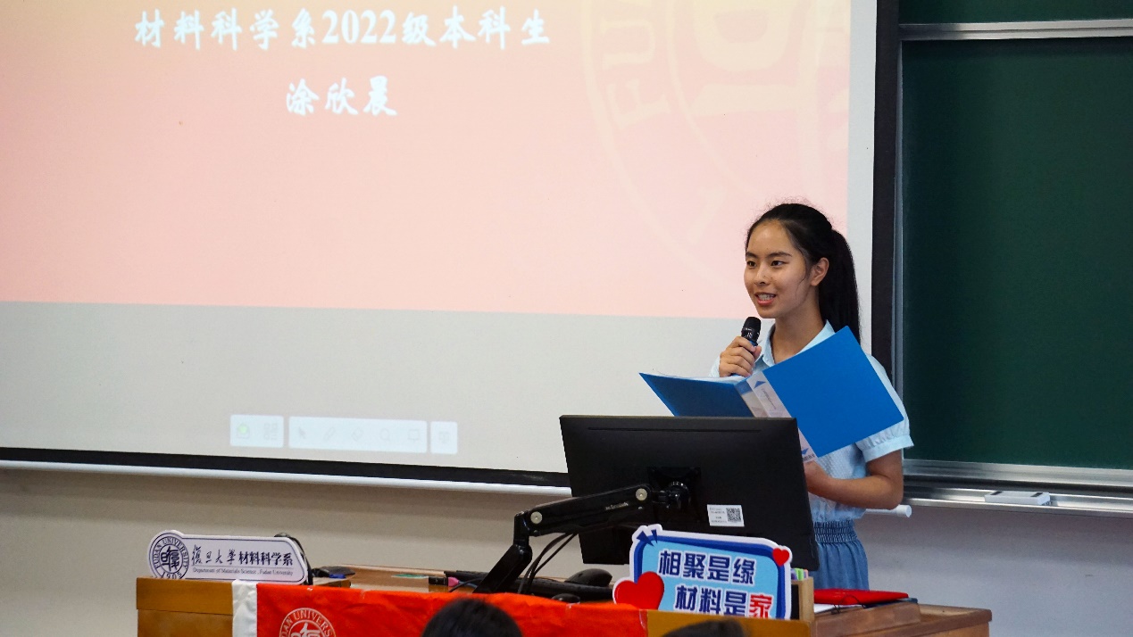 2022级材料物理专业学生涂欣晨同学作为学生代表上台发言。涂欣晨同学回顾了选择复旦、选择材料的心路历程。涂新晨同学提到,选择污污漫 ,既是以兴趣择专业,更是以理想担责任。展望未来,作为材料科学系新学子,涂欣晨同学与同学们共勉,牢记昂扬奋进、坚韧顽强、无畏拼搏的精神,号召大家在污污漫 大家庭中砥砺奋进、追求卓越,为国家智造、解决“卡脖子”难题做出自己的一份贡献。